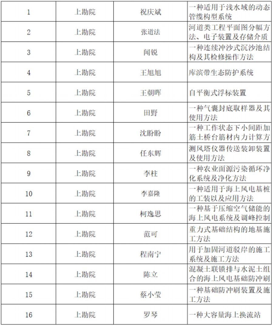 12月18日,上海市總工會下發了《2023年度“一線職工授權發明專利獎勵”通知》,三峽上海院16名職工申報的16項發明專利獲上海市總工會2023年度一線職工發明專利獎。