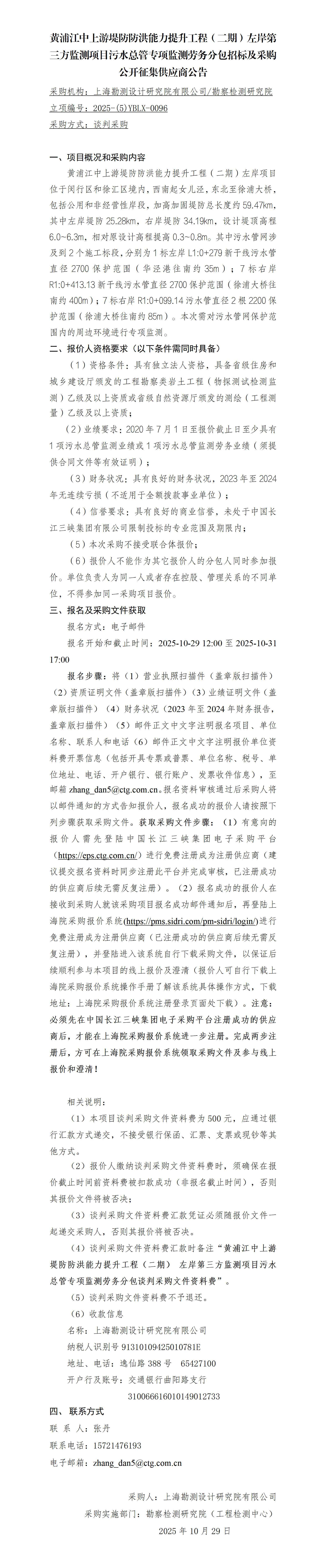 黃浦江中上游堤防防洪能力提升工程(二期)左岸第三方監測項目污水總管專項監測勞務分包招標及采購